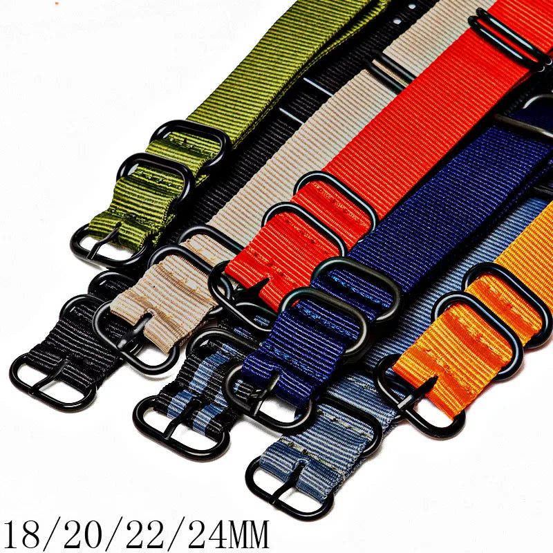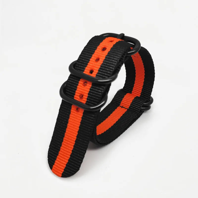 Multicolor Watch Strap Nylon Black Ring Buckle 18mm 20mm 22mm 24mm Striped Waterproof Replace Watch Accessories for Man Women
