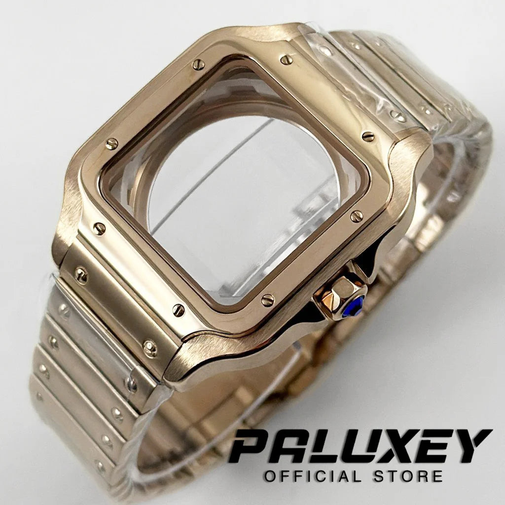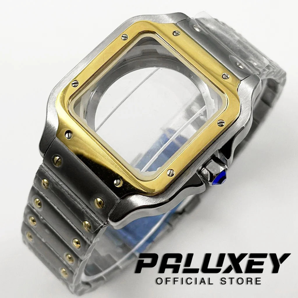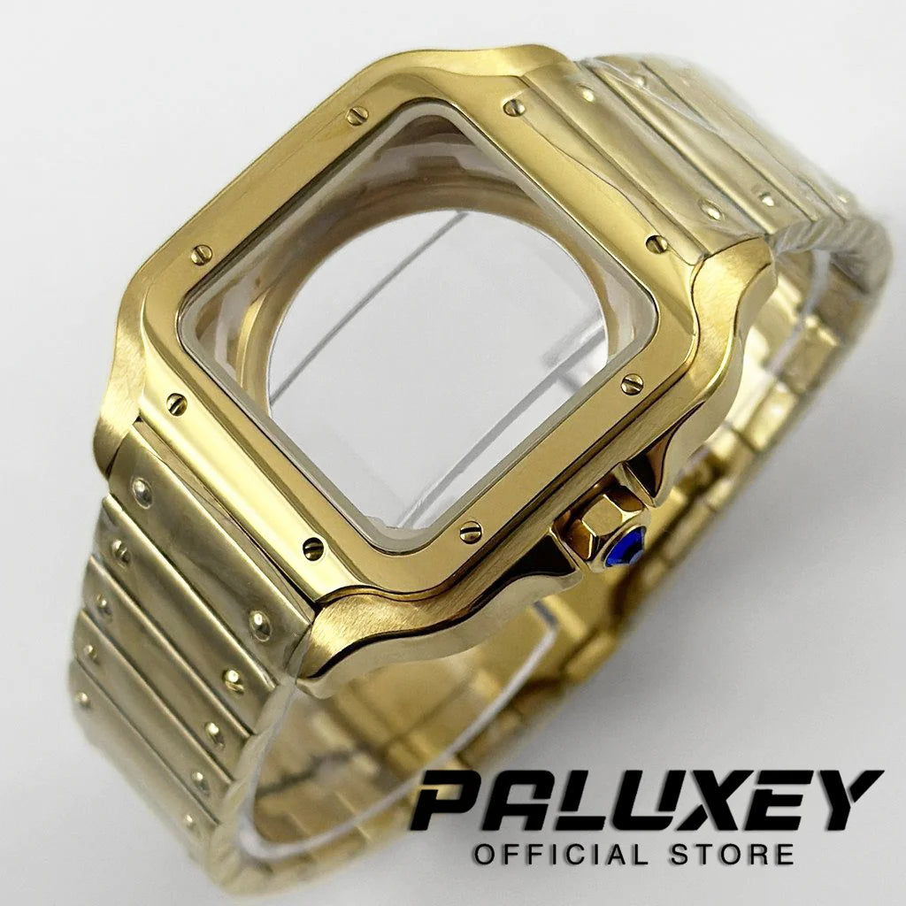 NH35 38mm Square Watch Case 316L Stainless steel Watch Accessories Santos Modification Parts for NH35 4R35 NH36 4R36 Movements