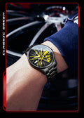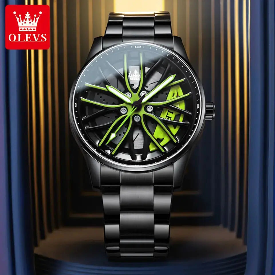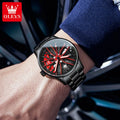 OLEVS Watch for Men 360° Rotary Dial Sport Car Rim Wheel Hub Waterproof Luminous Fashion Stainless Steel Men's Quartz Wristwatch