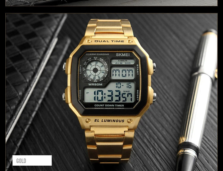 TOP Business Men Fashion Casual Electronic Wristwatches Waterproof Clock Relogio Masculino Digital Dual Time Sports Watches