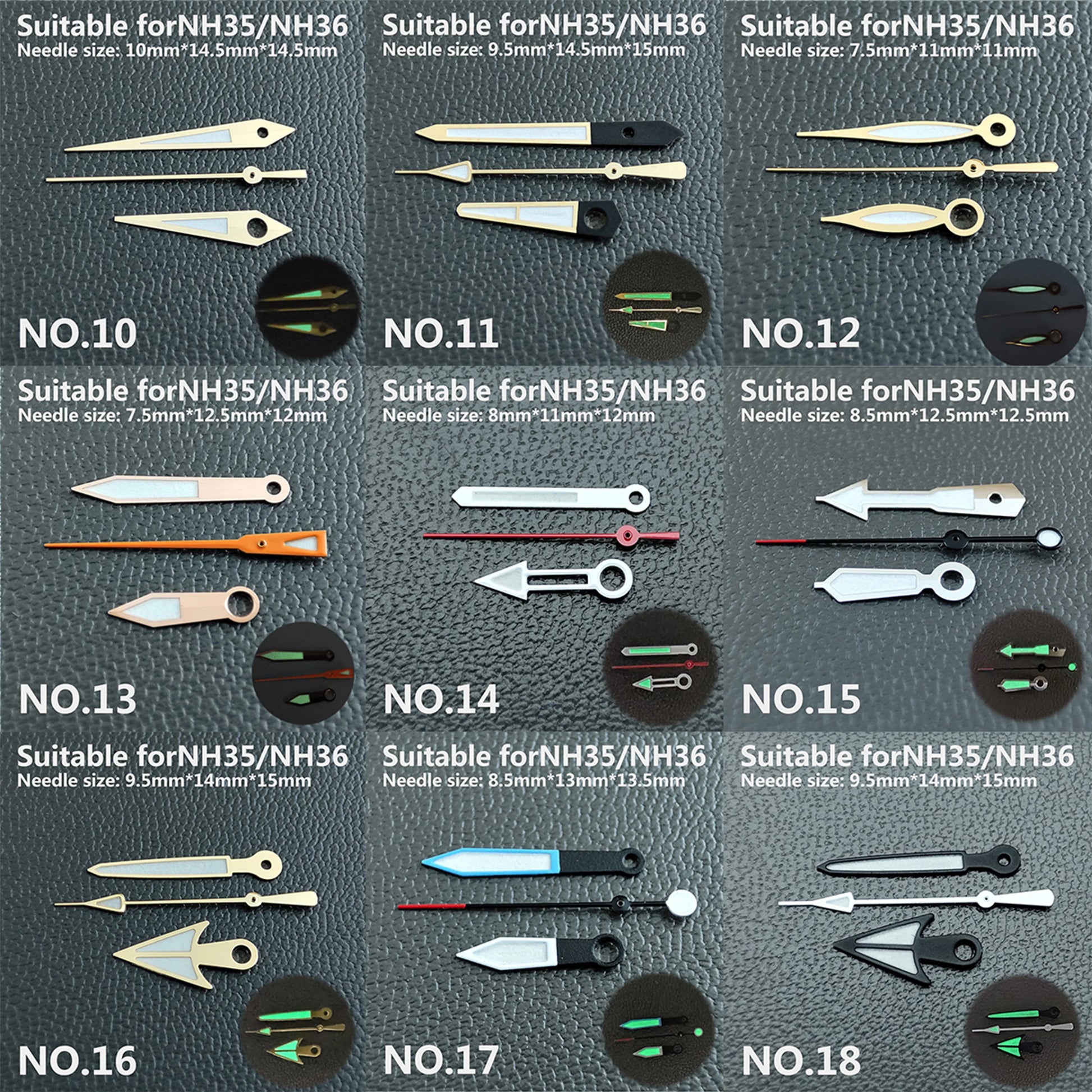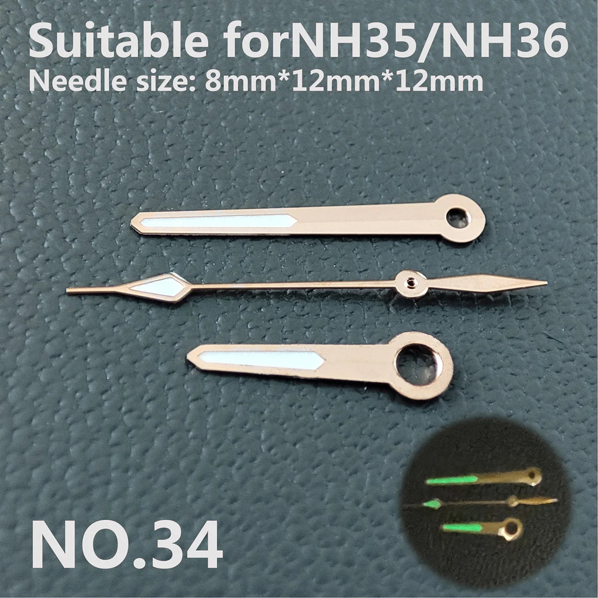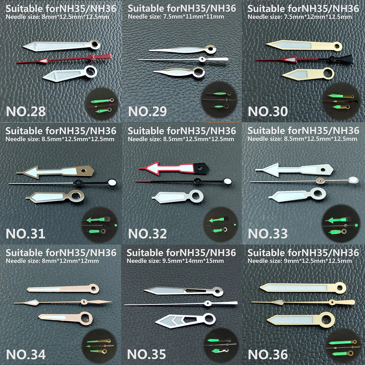 Watch accessories watch pointer NH35 hands white pointer green super luminous, suitable for NH35, NH36 movement NO.1~NO.44
