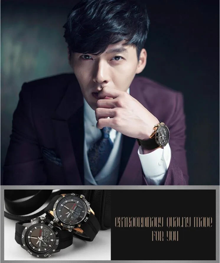 Watches Men Waterproof Solar Power Sports Fashion Casual Watch Man Men's Wristwatches 2 Time Zone Digital Quartz LED Clock Men