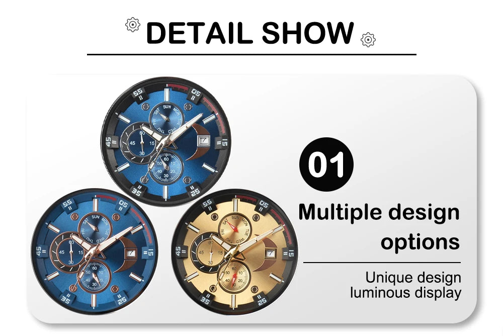 Feature: STOP WATCH,Luminous,Auto Date,Complete Calendar,Week Display